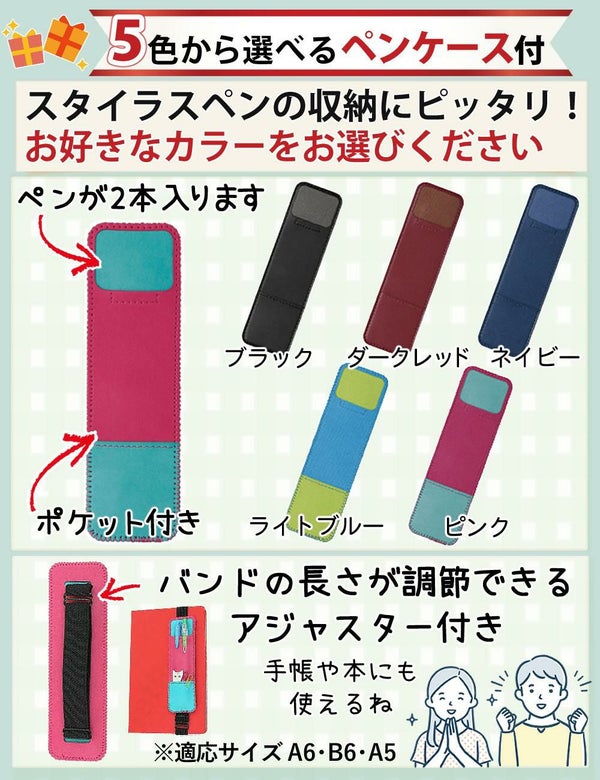 ペンや小物を収納でき、手帳と一緒に持ち運べる便利なアイテムです。