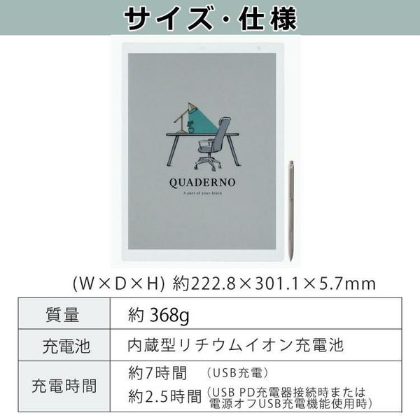 電子ペーパー「クアデルノ」QUADERNO A4(Gen. 3C)A4専用ケース