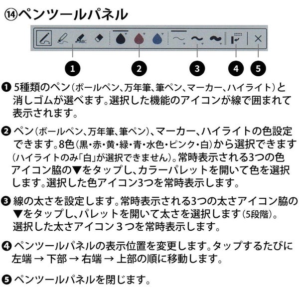 ・5種類のペン(ペン、万年筆、筆ペン、マーカー、ハイライト)と、8色を組み合わせが可能。