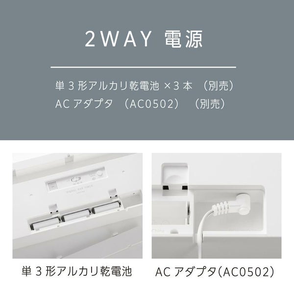 | 電源 | 単3形アルカリ乾電池×3本(別売) ACアダプタ(AC0502)(別売) |