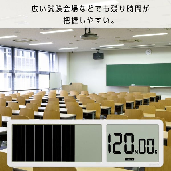 バーの目盛りで時間の経過が分かりやすく、広い場所でも見やすい大型サイズのタイマーです。
