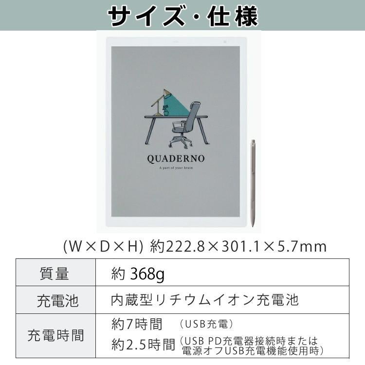 他の画像を見る 「紙のような書き心地。カラー表示でさらに進化した『クアデルノ』電子ペーパー!」 富士通 FMVDP43CA4 電子ペーパー クアデルノ QUADERNO A4 (Gen. 3C) 選べる専用ケース ペンケース クリアファイル セット(ラッピング不可) 販売価格 ¥ 88,000 税込 カートに入れる お気に入りに登録する (0件)