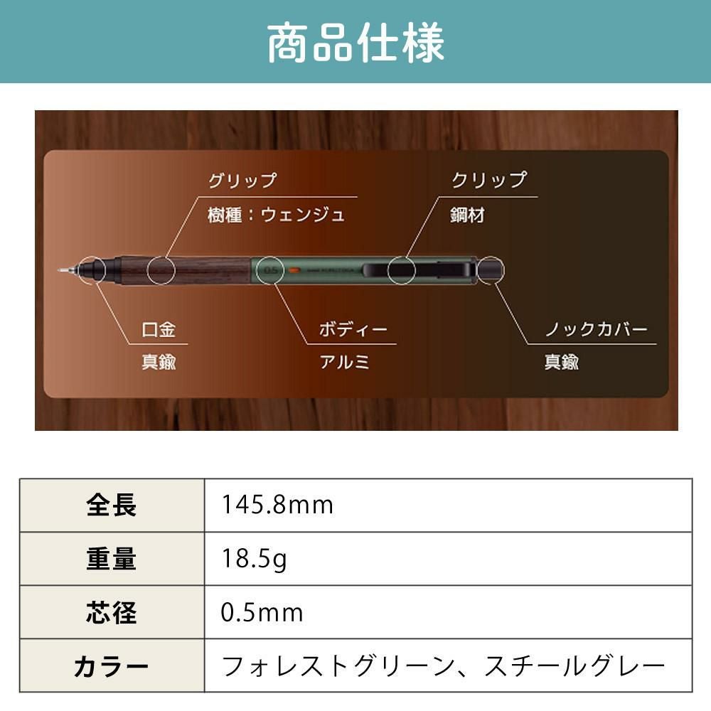 他の画像を見る 木×アルミ2つのマテリアルの融合 三菱鉛筆 クルトガ ウッド シャープペン 0.5mm フォレストグリーン スチールグレー 販売価格 ¥ 2,980 税込 カートに入れる お気に入りに登録する (0件)
