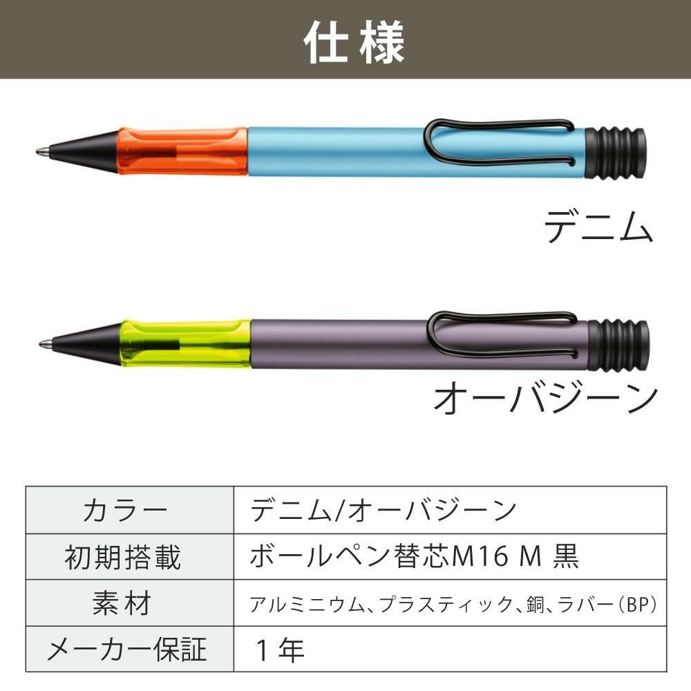 他の画像を見る LAMY safariの主な特徴を引き継ぎながら、軸径をわずかに太く仕上げたアドバンスト版。 LAMY アルスター デニム オーバジーン 限定 JETSTREAM 替芯付き ボールペン 油性ボールペン AL-star 販売価格 ¥ 5,280 税込 在庫切れ カートに入れる お気に入りに登録する (0件)