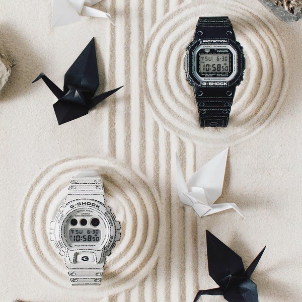 折り紙は耐久性と美しさのある和紙の発明によって進化し、紙から何でも作り出すことができる表現の自由を象徴するもの。その精神性とクラフトマンシップをG-SHOCKに込めました。ベゼルからバンドに至るまで、折り紙の特徴を細部にわたって再現したユニークなデザインが特徴です。ベゼルとバンドには折り紙において特徴的な「谷折り」と「山折り」の2種類の点線パターンを配し、和紙にインスパイアされた質感で仕上げています。バックライト点灯時と裏蓋には、折り紙の代表格である鶴のマークをデザイン。一枚の紙から生まれる無限の可能性を表現しています。また、日本の伝統的な芸術である折り紙にちなみ、Made in Japanと生産地にもこだわりました。パッケージも特別仕様になっています。