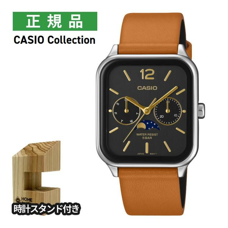 月の満ち欠けを確認できる、ムーンフェイズ機能付きのアナログ腕時計です。スタイリッシュな形状と複数のサブダイアルが印象的なモデルです。5気圧防水仕様で、手洗いや突然の雨でも安心です。