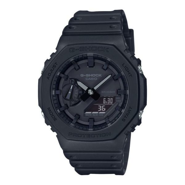 究極の強さを求めて進化を続けるタフネスウオッチG-SHOCKから、初代モデル“DW-5000C”のコンセプトを受け継ぎ、更なる薄型化を果たしたデジタル・アナログコンビネーションモデルです。初代モデル“DW-5000C”にも採用された“八角形フォルム”を継承。タフな構造はそのままに無駄を省いたシンプルなデザインのコンビネーションモデルを開発しました。更にケース素材には、高剛性を発揮するカーボン繊維入りファインレジンを使用し、厚さ11.8mmを実現しました。カラーはG-SHOCKらしいブラックアウトを採用しています。