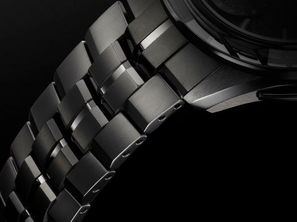 上質な仕上げと薄く美しいフォルムを追求しているOCEANUS Mantaライン。OCW-S7000CN-1Aは、OCEANUSが誇るものづくりの技術と日本の伝統技法が美しく融合したモデルです。上下で異なるカッティングラインが美しいサファイアガラスベゼルが特徴で、江戸切子の職人が一つひとつ手作業でカットを施して仕上げています。デザインテーマは「CALM NIGHT」。月の光に照らされた夜の海を、オールブラックのチタン外装と江戸切子のサファイアガラスベゼルで表現しました。硬いサファイアガラスに幅、深さを均一に切り込みを入れ、江戸切子にしか表現できない煌めきとシャープな美しさが魅力です。深みと輝きを生み出すシルバーとブラックのグラデーションカラーは、どこまでも続くような海の広大さを表現。光の加減でブルーカラーに偏光し本物の海を思わせます。また、月面の凹凸や陰影をモチーフにしたテクスチャーダイアルを採用。マットな質感で、月面の繊細かつ優美な表情を表現しました。