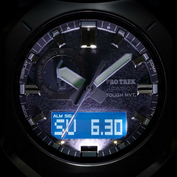 ・ダブルLEDライト:文字板用LEDライト(フルオートライト、スーパーイルミネーター、残照機能、残照時間切替(1.5秒/3秒)付き)、LCD部用LEDバックライト(フルオートライト、スーパーイルミネーター、残照機能、残照時間切替(1.5秒/3秒)付き)