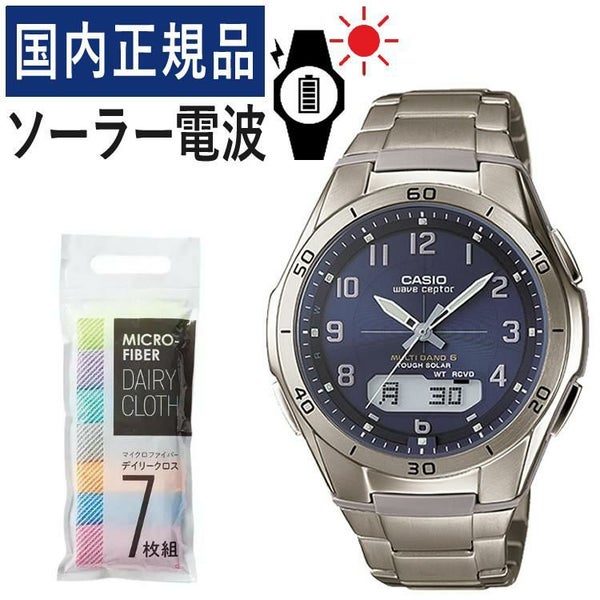 カシオ ウェーブセプター ソーラー電波時計 軽量 チタン ネイビー シルバー メンズ 国内正規品 WVA-M640TD-2AJF クロス7枚組付