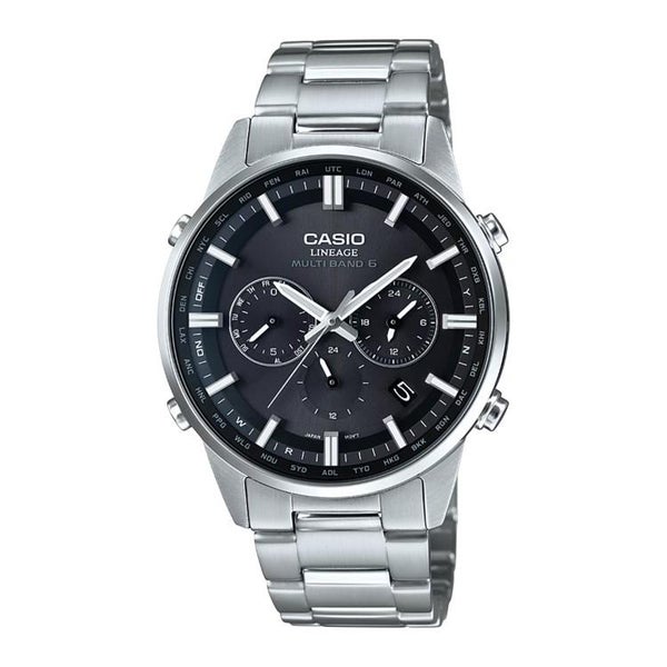 フルメタルケースのソーラー電波時計「LINEAGE」から、文字板を定番のブラックでカラーリングし、バーインデックスを採用したシンプルデザインのモデルです。1/20秒単位で計測が可能なストップウオッチ、10気圧防水等、日常で役立つ機能を搭載。風防に反射防止コーティングサファイアガラスを採用し、傷が付きにくく高い視認性を保ちます。蛍光灯のわずかな光で充電するタフソーラーに加え、電波受信機能は日本2局、中国、アメリカ、イギリス、ドイツの標準電波に対応したマルチバンド6です。