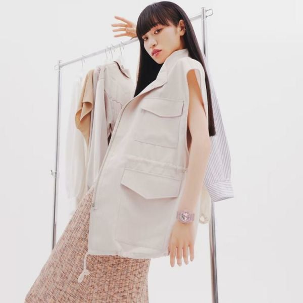 小さなサイズとシンプルなルックスに、シルクのような質感のGMA-P2100シリーズです。ベゼルとバンドにマット仕上げの偏光パール塗装を、文字板には美しい輝きを放つ艶消しのメタリックカラーをあしらい、ミニマルデザインのシンプルな表情に華やかさをプラスしました。優しい色合いとさりげない光沢感が腕元を上品に彩ります。また、ベゼル、バンドの主な樹脂パーツにはバイオマスプラスチックを使用し、環境にも配慮しました。