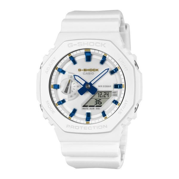 恋人たちに贈るクリスマス限定ペア「Gプレゼンツラバーズコレクション」より、2025年のクリスマスシーズンを彩るスペシャルモデルです。スタイリッシュなデザインが人気のGA-2100、GMA-P2100をベースモデルに、クリスマスツリーのオーナメントをイメージしたホワイト×ブルーの爽やかで、普段使いできるデザインに仕上げました。