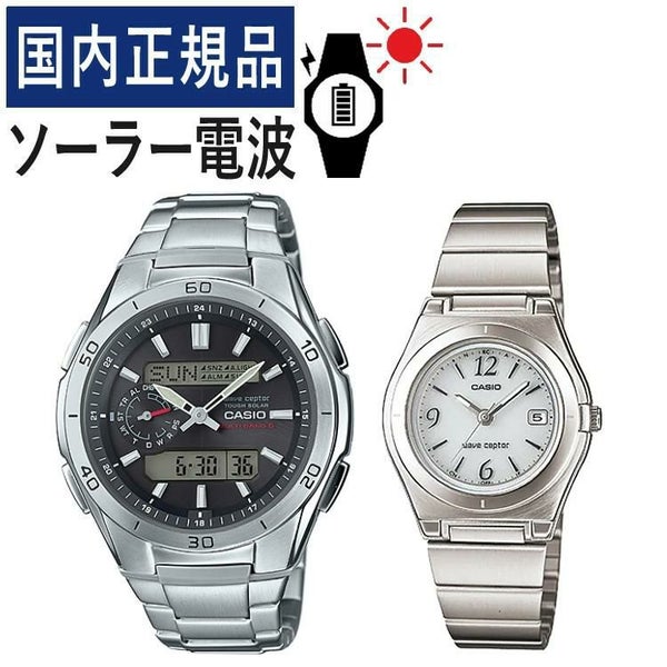 ソーラー電波のペアウォッチです。メンズは付属の専用ツールでアジャストが可能なプッシュ&リリースバンドを採用、レディースはフリーバックルを採用しています。簡単にバンドの長さを調整できます。