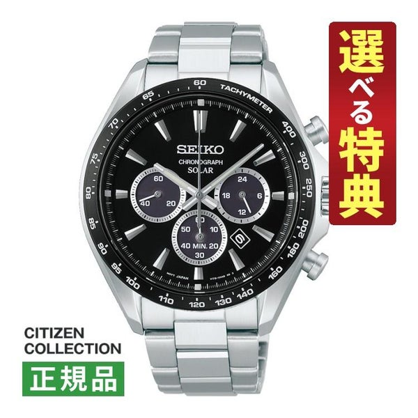 4種類から選べる豪華特典付き! (選べる特典付)セイコーセレクション 腕時計 Sシリーズ ソーラークロノグラフ ブラック メンズ 国内正規品 SBPY185