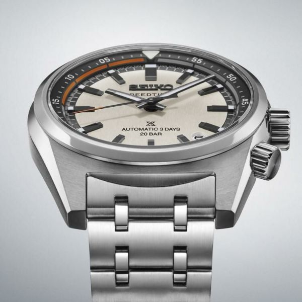 カウントダウン目盛りつき内転リングと70年代に確立したSeikoスポーツウオッチ伝統のフローシェイプが融合した6Rキャリバー搭載の新デザインライン。6R55キャリバーを20気圧防水のケースに搭載し、過酷な環境や条件の下で行われるモータースポーツ(ラリー)計時に求められる機能と信頼性を追求。20気圧防水を備えた薄型ケースは、優れた装着性と防水性を両立します。カウントダウン目盛りつき内転リングは、残り時間や作業完了までの目標時間と云った、任意の時間のカウントダウン計測が可能。また内転リング上の基準位置マーカーにはルミブライトを充填することで、暗所における視認性を確保しています。