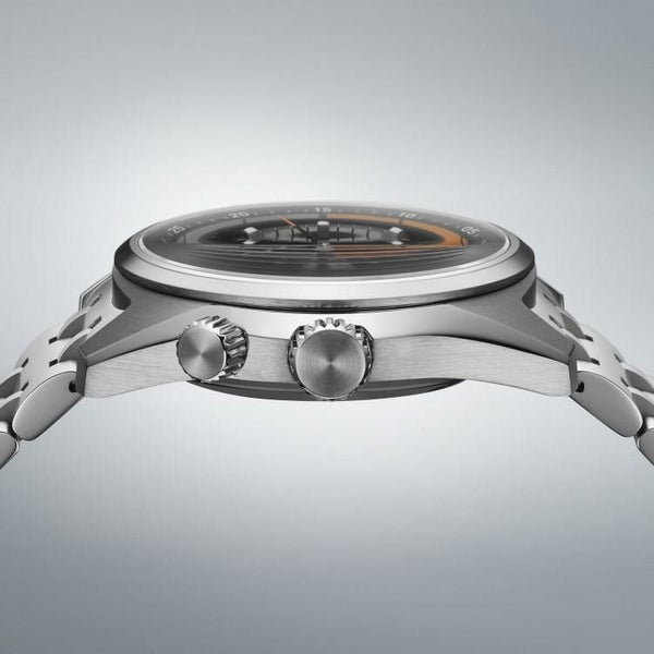 カウントダウン目盛りつき内転リングと70年代に確立したSeikoスポーツウオッチ伝統のフローシェイプが融合した6Rキャリバー搭載の新デザインライン。6R55キャリバーを20気圧防水のケースに搭載し、過酷な環境や条件の下で行われるモータースポーツ(ラリー)計時に求められる機能と信頼性を追求。20気圧防水を備えた薄型ケースは、優れた装着性と防水性を両立します。カウントダウン目盛りつき内転リングは、残り時間や作業完了までの目標時間と云った、任意の時間のカウントダウン計測が可能。また内転リング上の基準位置マーカーにはルミブライトを充填することで、暗所における視認性を確保しています。