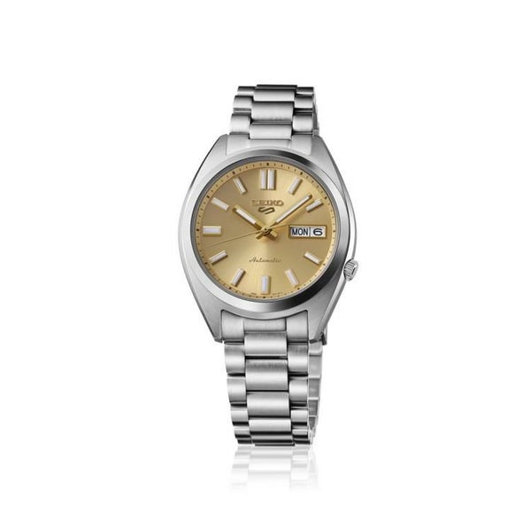 人気のSNXSシリーズより、ゴールドのキーカラーが特徴のモデルが登場。トラッドファッションにおいて多様されるアイテム(ブレザーの金ボタン等)とコーディネートしやすいカラーリング。ビンテージウオッチを彷彿とさせる配色は、SNXSの造形とマッチしクラシカルな印象を与える。