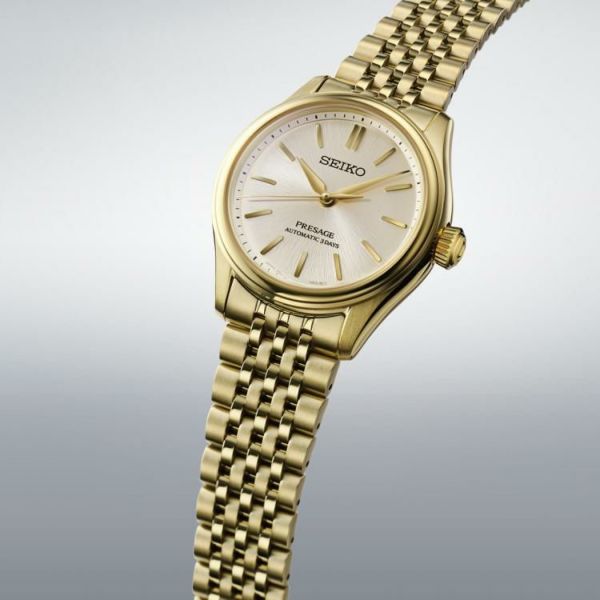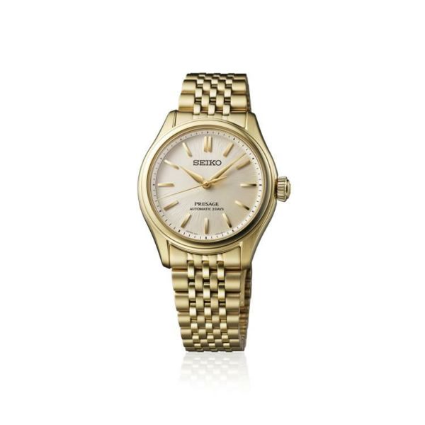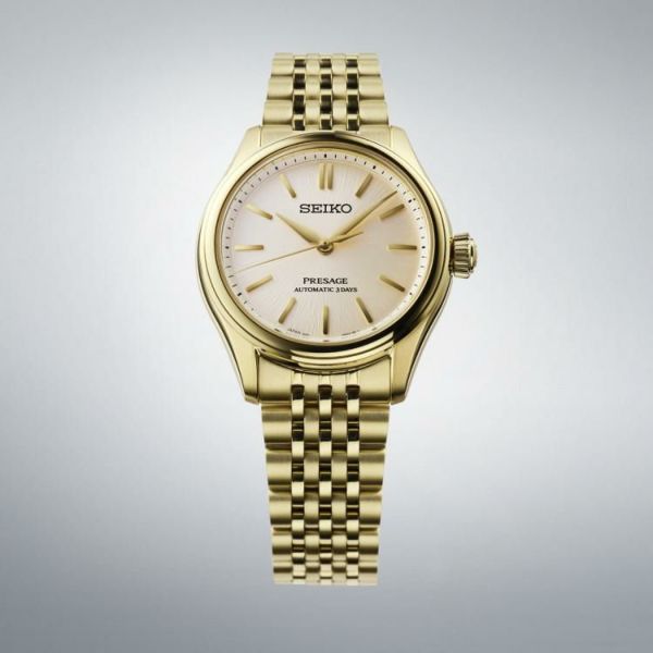 クラシックシリーズより、トラッドな趣向にマッチする小径サイズ(36mm)モデルが登場。ダイヤルの型打ちは小径サイズでも見ごたえのある、絹糸をイメージした繊細な放射模様を施しました。ダイヤルの美しさを最大限引き出すため、あえてカレンダー表示を無くし、ヴィンテージテイストを表現しています。ダイヤルカラーには、何色にも染まっていない、繊維本来の色である素色を採用。奥深いダイヤルとレトロ感のある繊細な多列ブレスレッドが、トラッドな雰囲気を醸成します。