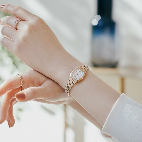 2011年に発売して以来、デザインコードを継承しながら時代に合わせてアップデートを重ねてきたロングセラーのアラビアデザインを、ルキア30周年となる今年「Happy Collection」としてコレクション化します。おおらかなトノー型のフォルムに、はじけるようにレイアウトされた丸みのあるアラビアフォントが特長。ルキアで長年愛され続けている見るたびに心躍るデザインとなっております。1時・7時位置には、クローバー型の台座にセッティングされたラボグロウン・ダイヤモンドが輝きます。りゅうずはダイヤル上のダイヤ台座と連動感のあるクローバー型の新デザインを採用しております。