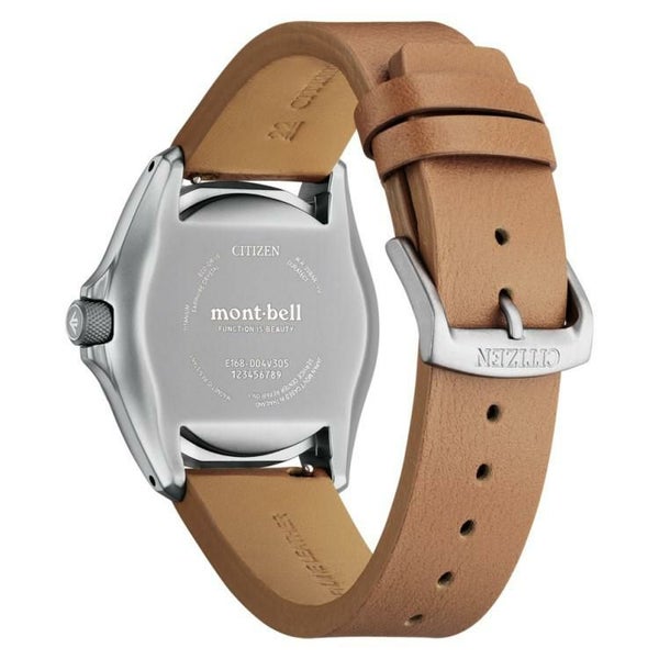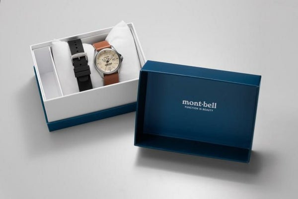 革バンドモデルは、シリコンラバーバンド付属の2Way仕様。ご自身でシーンに合わせて交換できるインターチェンジャブル構造です。裏ぶたレス構造のケースバックには、モンベルのブランドロゴをレーザー刻印。CITIZEN×mont-bellのロゴが入った専用ボックス付きです。