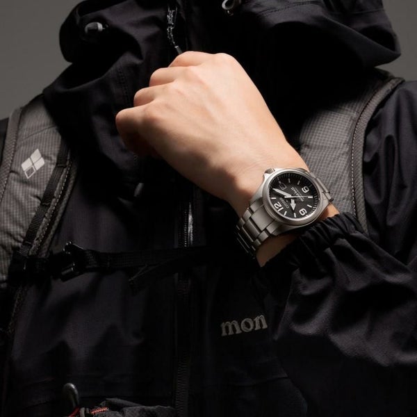 2016年から続くモンベル×シチズンのコラボレーションモデル第5弾。大自然の中で活動する人達がどんな状況でも快適に行動できるよう“Light & Fast” “Function is Beauty”を体現するモンベルの哲学とシチズンの技術が融合。時計としてのミニマルな魅力を究極に引き出しています。ダイバーズウオッチ用に開発されたCal.E168を搭載。アウトドアのハードな環境にも耐え抜くタフさ、昼夜問わない時刻の見やすさ、操作の簡単さといった、優れた実用性を備える1本です。