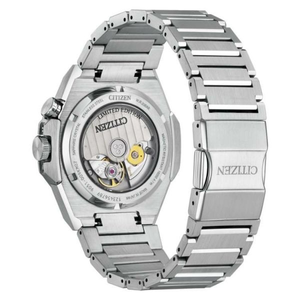 Series 8の都会的でモダンな世界観、朝と夜の異なる表情を、モノクロームカラーと幾何学的な文字板のパターンで表現。シンプルでありながらも、上質でスポーティな存在感を放つ「890 Mechanical」シリーズの限定モデルです。SILVERモデルは、“新しい朝を待つ、洗練された都市”をイメージ。シルバーを配色した幾何学模様の文字板が、佇むビル群の陰影を表現しています。20気圧防水、耐磁2種、ムーブメントの動きを楽しめるシースルーバック、サファイアガラス、クラリティ・コーティングなどフルスペックを備えています。