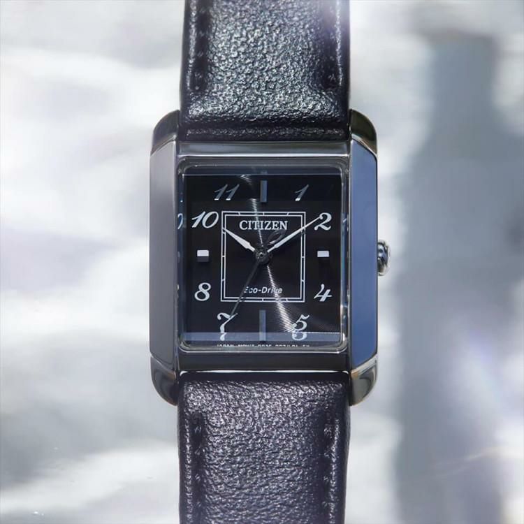 スタイリッシュな表情が人気の「SQUARE Collection」からタイムレスなデザインと見やすさにこだわった新作が登場。大胆にカットされたサファイアカーブガラスと、やや丸みをおびたスクエアケースが人気の「SQUARE Collection」の新作は、タイムレスでエレガントなデザインに仕上げました。文字板にはアラビア数字のインデックスを採用。カーブガラスのカット位置を調節したことで映り込みを減らし、視認性を向上させています。革バンドモデルは、サステナブルな植物由来(リンゴ)のバンドを使用しています。