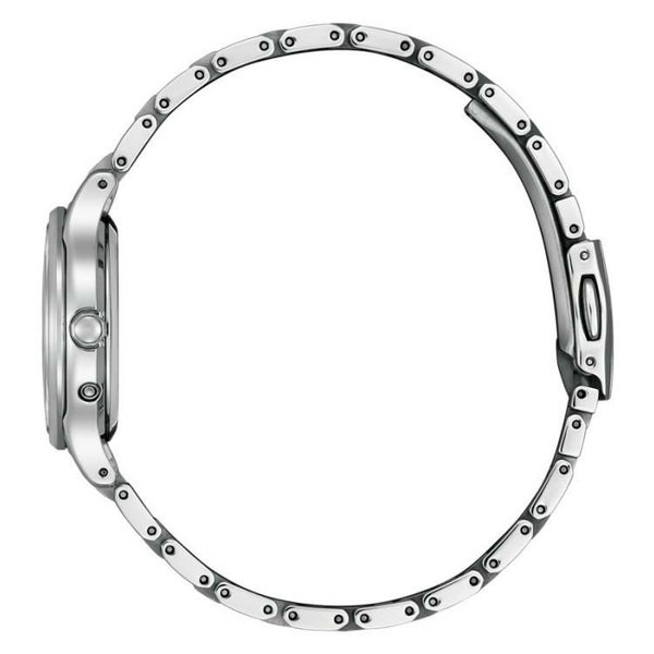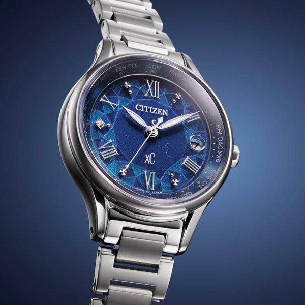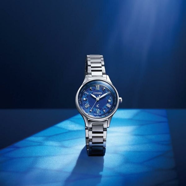 【xC】上品で洗練されたデザインで人気を集める「basic collection」の限定仕様。冬の澄んだ空気を表現したブルーの文字板に、ステンドグラスのキラキラとした輝きをイメージしたパターンを繊細に描いています。インデックスには、すっきりとした印象のローマ数字とともに、拡散する光を表現したカットパーツをレイアウトしています。9時の位置には、キラリと輝く1ポイントのラボグロウン・ダイヤモンドをセッティング。TYOの位置に光のマークをあしらい、艶やかに仕上げました。(ペアモデル:BY1000-51L)