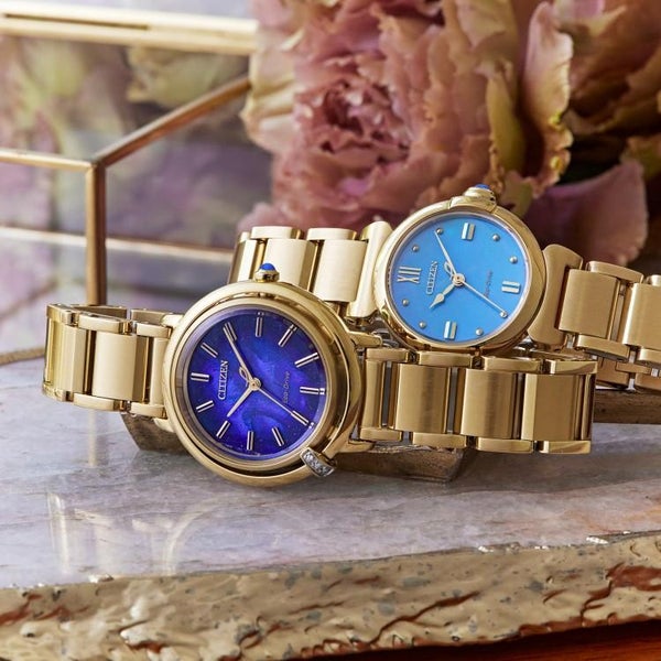 地球のように美しいサステナブルウオッチ、CITIZEN L(シチズン エル)。アンティーク風のテイストを生かしたライトゴールドのケース、太陽のもとで揺らめく海面を思わせるブルーの文字板。生命力あふれる美しい水(AQUA)を表現した「ROUND Collection」限定モデルです。