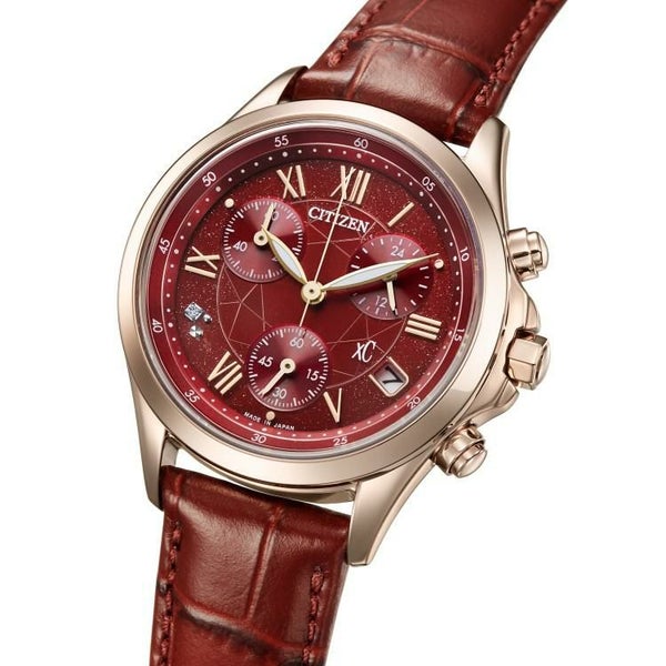 前を向く女性を応援するエンパワーウオッチブランド、シチズンxC(クロスシー)。洗練されたデザインが人気のクロノグラフに限定モデルが登場。華やかなサクラカラーのケースに、ダークレッドを組み合わせた存在感のある1本です。