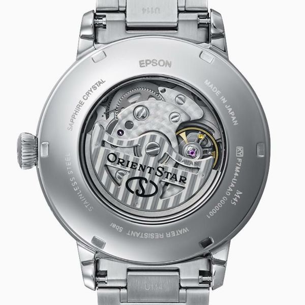 メタルバンドには新たにバンドの長さの微調整に便利な短いコマを追加して、着け心地の向上を図りました。自動巻き(手巻き付)の自社製ムーブメントは、日差+15秒~-5秒の高精度と50時間以上のパワーリザーブを両立。内部機構が鼓動する姿はサファイアクリスタルを用いたシースルーバックから見ることができ、機械式時計の魅力を堪能できます。