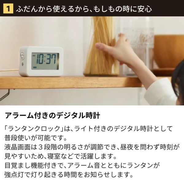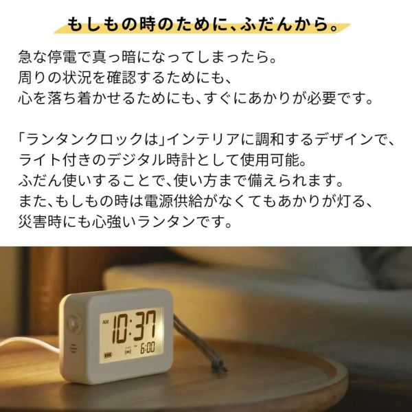 これさえあれば非常時も安心!普段使いを考慮したデザイン。使い勝手もシンプルな目覚まし時計付のランタンクロックです。