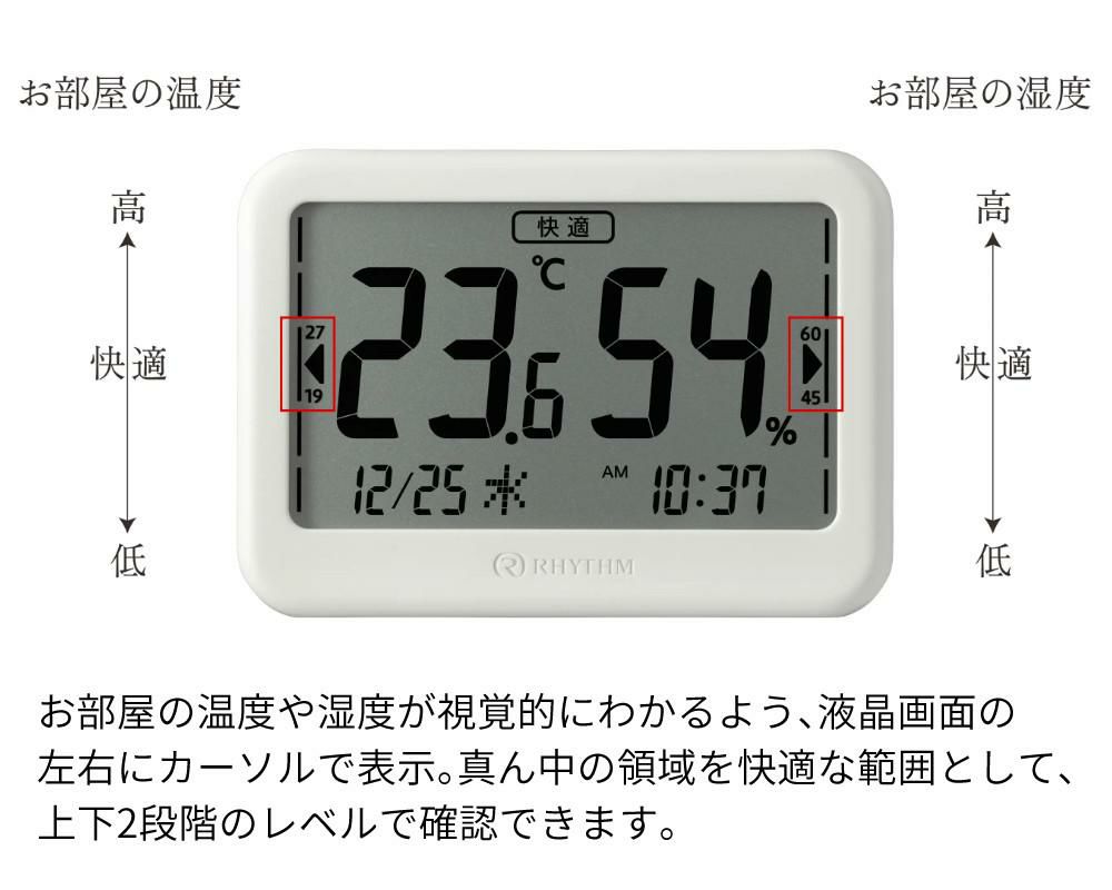 他の画像を見る バックライトと「環境目安表示」で、いつでもわかりやすくお部屋の環境をお知らせ リズム 温湿度計 コンフォメーター 湿度 温度 USB給電 高精度 ライトグレー/ダークグレー 9YYA46RH 販売価格 ¥ 3,980 税込 カートに入れる お気に入りに登録する (0件)