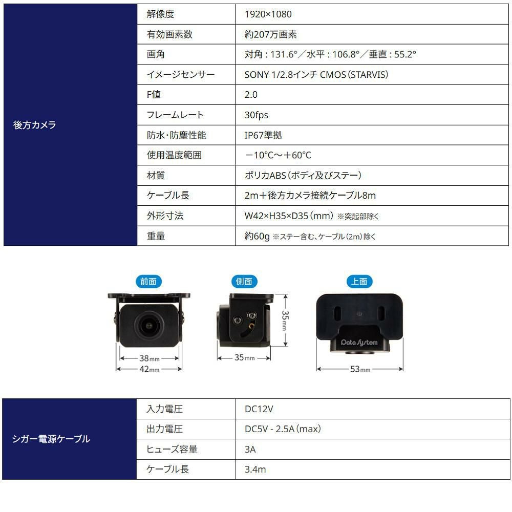 他の画像を見る 高解像度 フルハイビジョン 後方カメラ 採用 幅広い車種に装着可能 デジタルルームミラー データシステム DRM6030 11V型 フルハイビジョン 後方カメラ(ラッピング不可) 販売価格 ¥ 18,700 税込 カートに入れる お気に入りに登録する (0件)