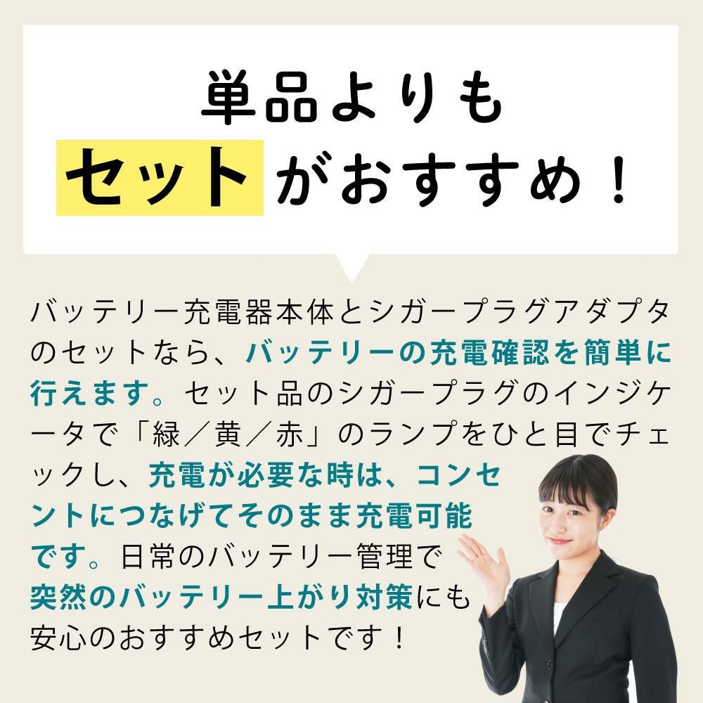 他の画像を見る 車両バッテリー バッテリーメンテナンス 安全設計 インジケータ TCL バッテリー充電器 車載対応 40-250 XS7.0JP シガープラグアダプタ付 3点セット(ラッピング不可) 販売価格 ¥ 35,500 税込 カートに入れる お気に入りに登録する (0件)