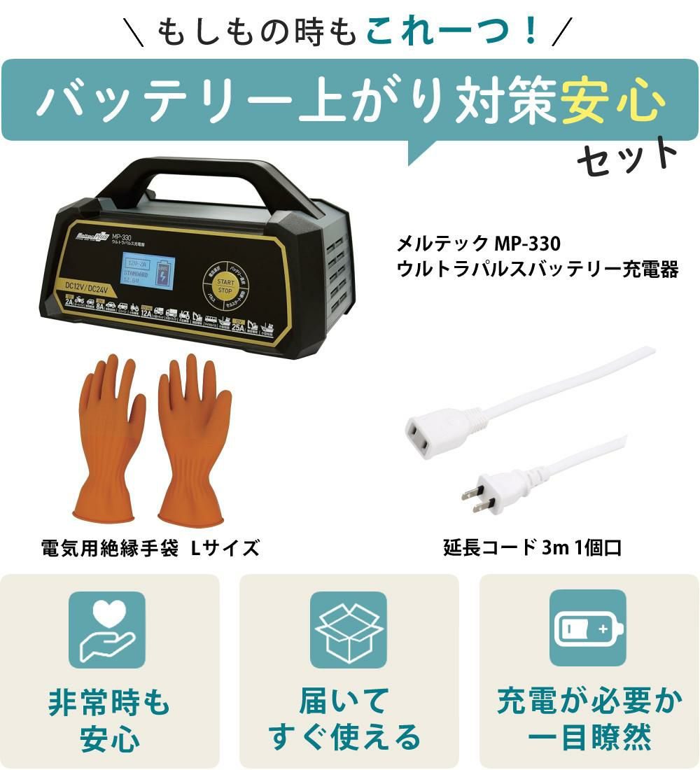 他の画像を見る バッテリー充電器 充電機 全自動 オートバイ バイク 軽自動車 普通車 自動車 ミニバン 小型農機 大型トラック マイクロバス アイドリング車 対応 開放型 密閉型 (バッテリー充電器セット)メルテック MP-330 ウルトラパルスバッテリー充電器&絶縁手袋&延長コード(ラッピング不可) 販売価格 ¥ 17,900 税込 カートに入れる お気に入りに登録する (0件)