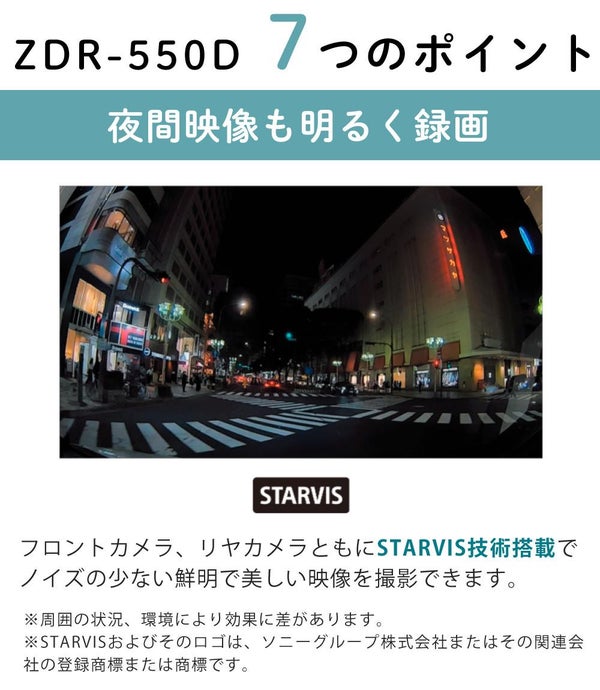 フロントカメラ、リヤカメラともにSTARVIS(TM)技術搭載でノイズの少ない鮮明で美しい映像を撮影できます。