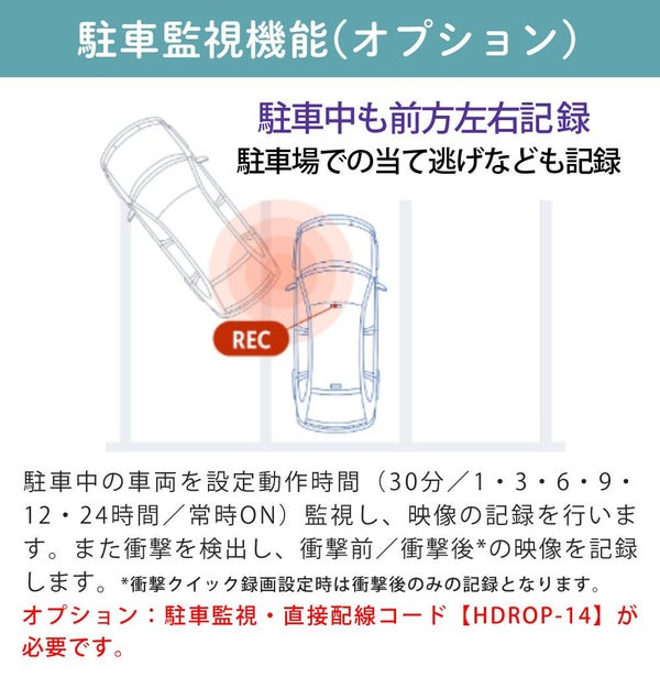 オプション 駐車監視・直接配線コード【HDROP-14】が必要 |