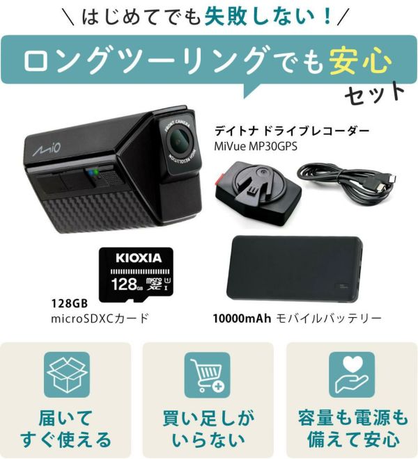 ホームショッピングオリジナル デイトナ製MiVue MP30GPS 49341+グリーンハウス モバイルバッテリーGH-BTPX100-BK+SDカード3点セット