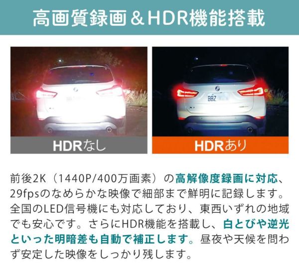 ●[ 前後2Kの高画質録画。安心の全国LED信号機対応 ]