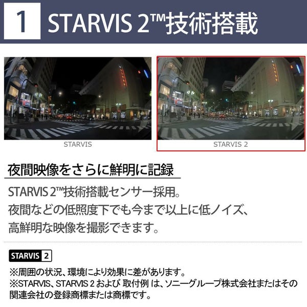 STARVIS2搭載。夜間などの低照度下でも今まで以上に低ノイズ、高鮮明な映像を撮影できます。