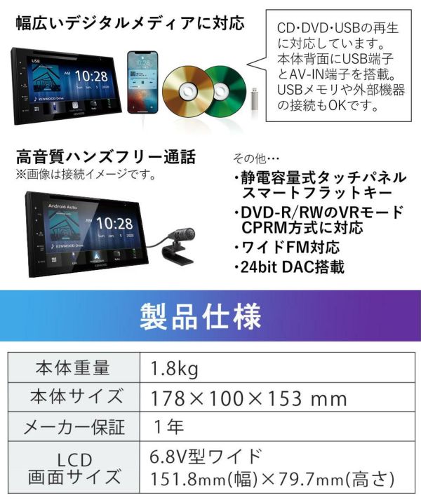 2)JVCケンウッド KENWOOD ディスプレイオーディオ カーオーディオ DDX5020SR