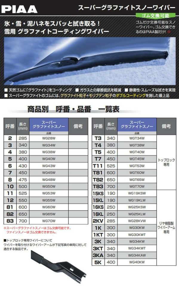 2)PIAA WG70W 呼番83 グラファイトスノー ブレード 700mm×1 |
