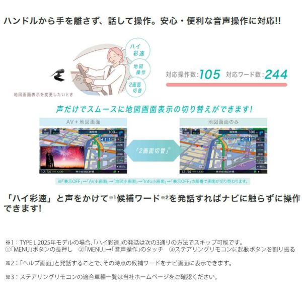 ●音声操作で運転中でもハンドルから手を離さず操作可能