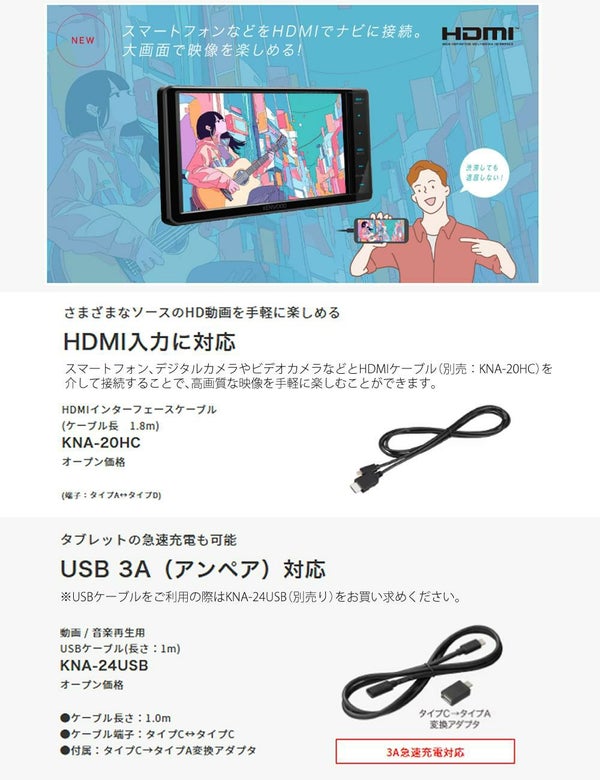 ※1:外部機器をHDMI接続する場合は、「KNA-20HC」(別売)が必要です。