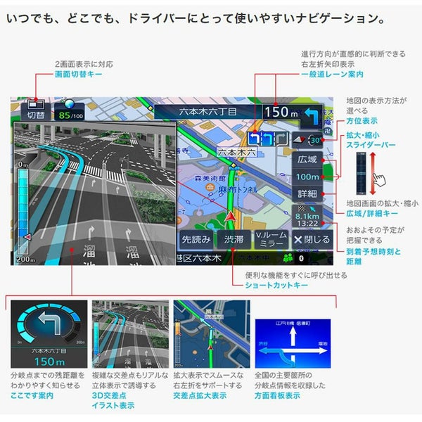 彩速ナビの特徴である高速レスポンスへのこだわりはもちろん、地デジやHDMI入力といった充実のエンターテインメント機能や、安心・便利な音声操作に対応した高コスパモデル!