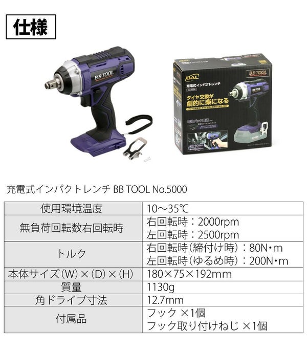 1)大橋産業 BAL BB TOOL 充電式インパクトレンチ No.5000