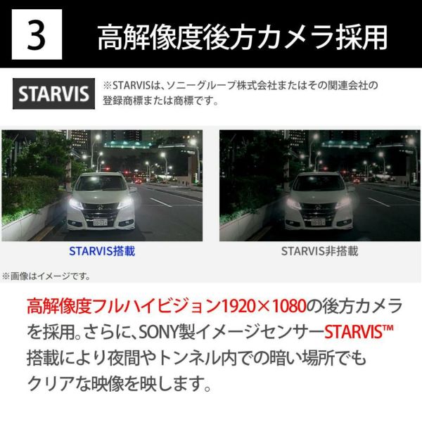 さらに、SONY製イメージセンサーSTARVIS搭載により夜間やトンネル内での暗い場所でもクリアな映像を映します。