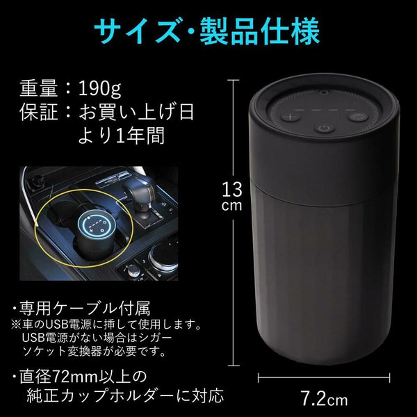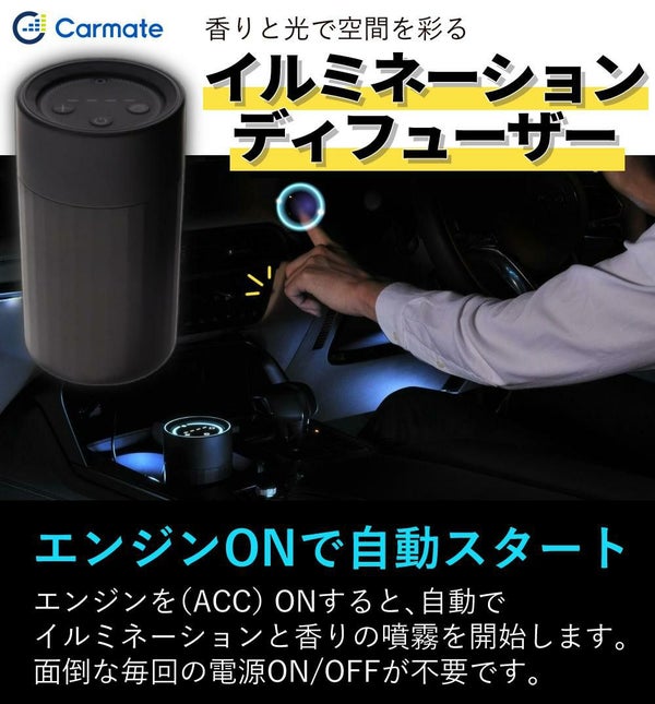 カーメイト L10601 は 噴霧式 の 車用芳香剤 。 コンパクト に設置できる 車 ディフューザー で、 カップホルダー にも対応。 USB電源 仕様で手軽に使える フレグランスディフューザー です。 車内 で アロマ を楽しみたい方に最適で、オイル3本セットで「届いてすぐ使える安心感」が魅力です。